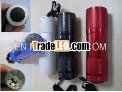 9 Led Flashlightmetal Allumium ;Push button power switch;Wrist strap;3*AAA drybatteries;Size :3-5/8"L x 1-1/8" (D)